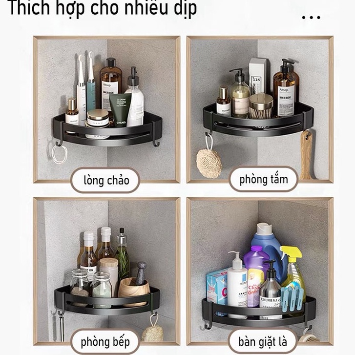 - Kệ góc, Giá đỡ treo dán góc tường dễ dàng tháo lắp nơi phòng tắm, nhà bếp, phòng ngủ đựng mỹ phẩm, gia vị.