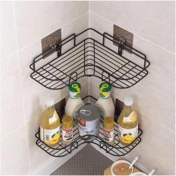 Kệ Góc Dán Tường, Kệ Để Đồ Nhà Tắm Nhà Bếp Thép Sơn Tĩnh Điện Chống Nước -Tặng 2 Miếng Dán Siêu Dính