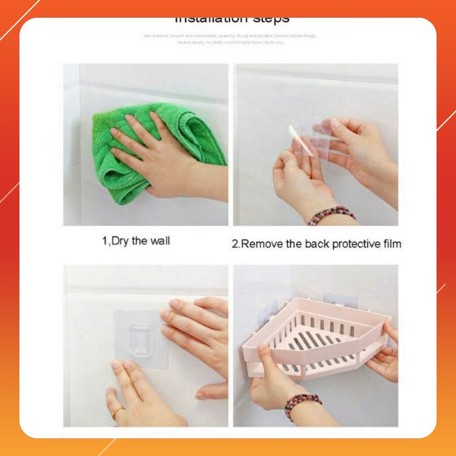 - Công dụng: Sắp xếp dầu gội, sữa tắm gọn gàng ..., tiện lợi không cần khoan tường, miếng dán siêu dính, có khe hở thoát nước, khô ráo...
