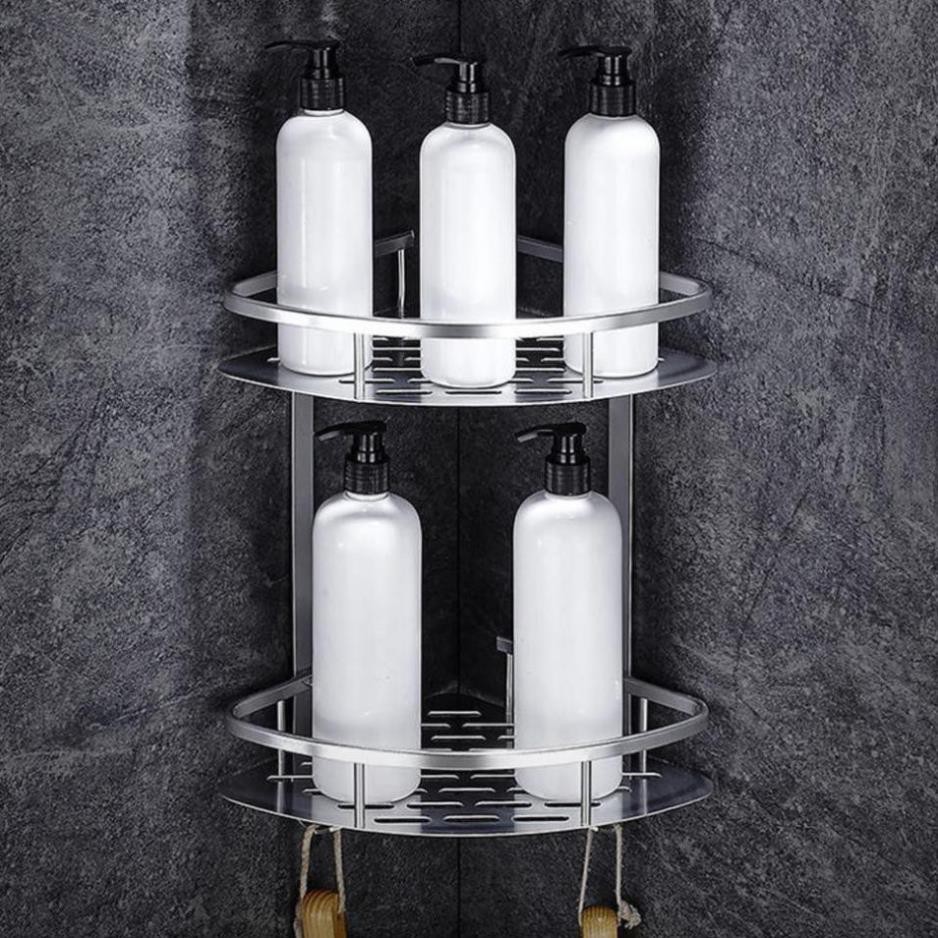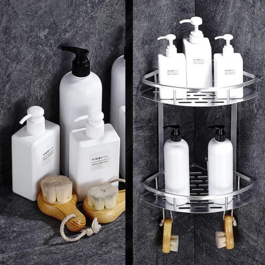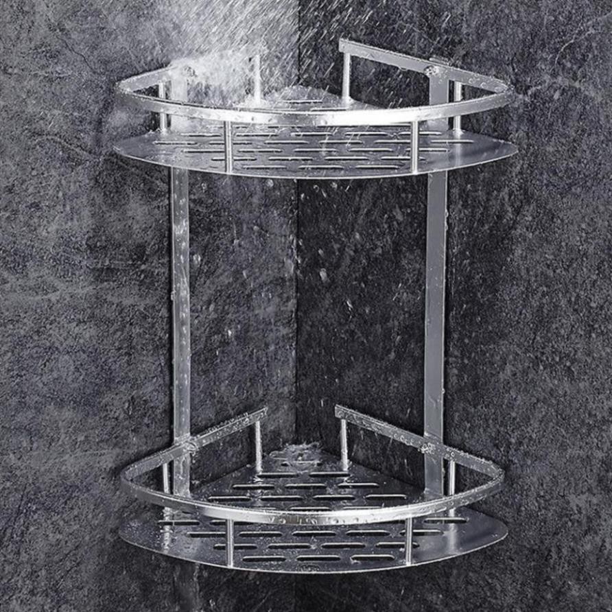 Kệ góc để đồ nhà tắm 2 tầng ⚡FREE SHIP⚡ Chất liệu hợp kim nhôm cao cấp, sáng bóng, không gỉ, chịu lực lớn