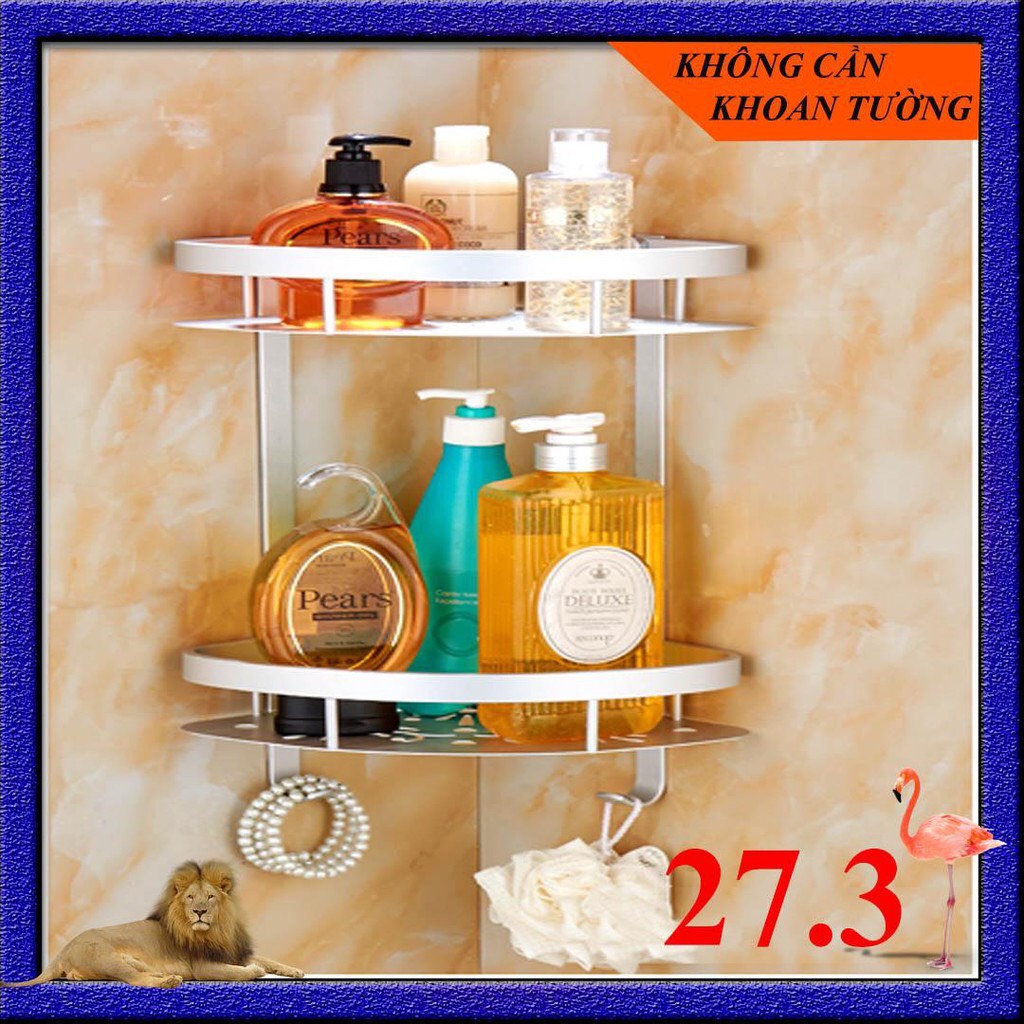 Kệ góc để đồ nhà tắm nhà bếp 2 tầng bằng nhôm tiện dụng không cần khoan đục