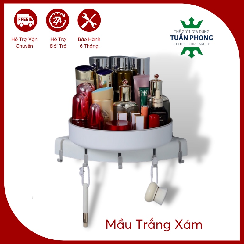 Kệ Góc Để Đồ Nhà Tắm,Nhà Bếp Xoay 360Độ Dán Tường(Không Phải Khoan Tường),Giá Để Đồ Đa Năng