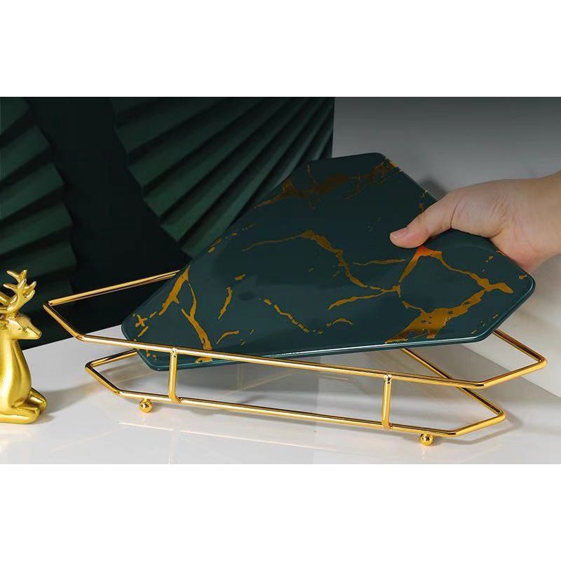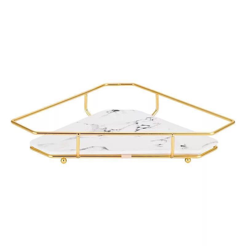 Kệ Góc Để Đồ Nhà Tắm Tam Giác Chất Liệu Sứ Cao Cấp, Khay Đựng Mỹ Phẩm Vân Đá Khung Mạ Vàng Sang Trọng