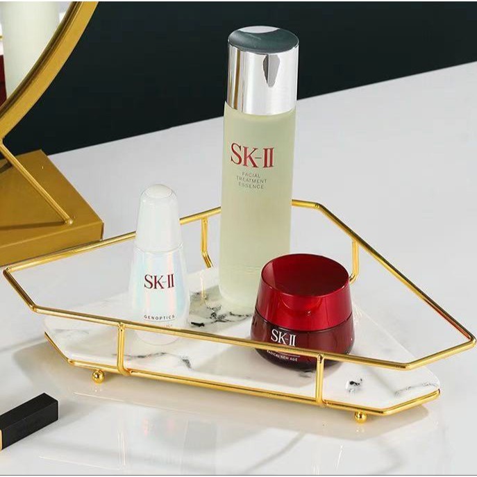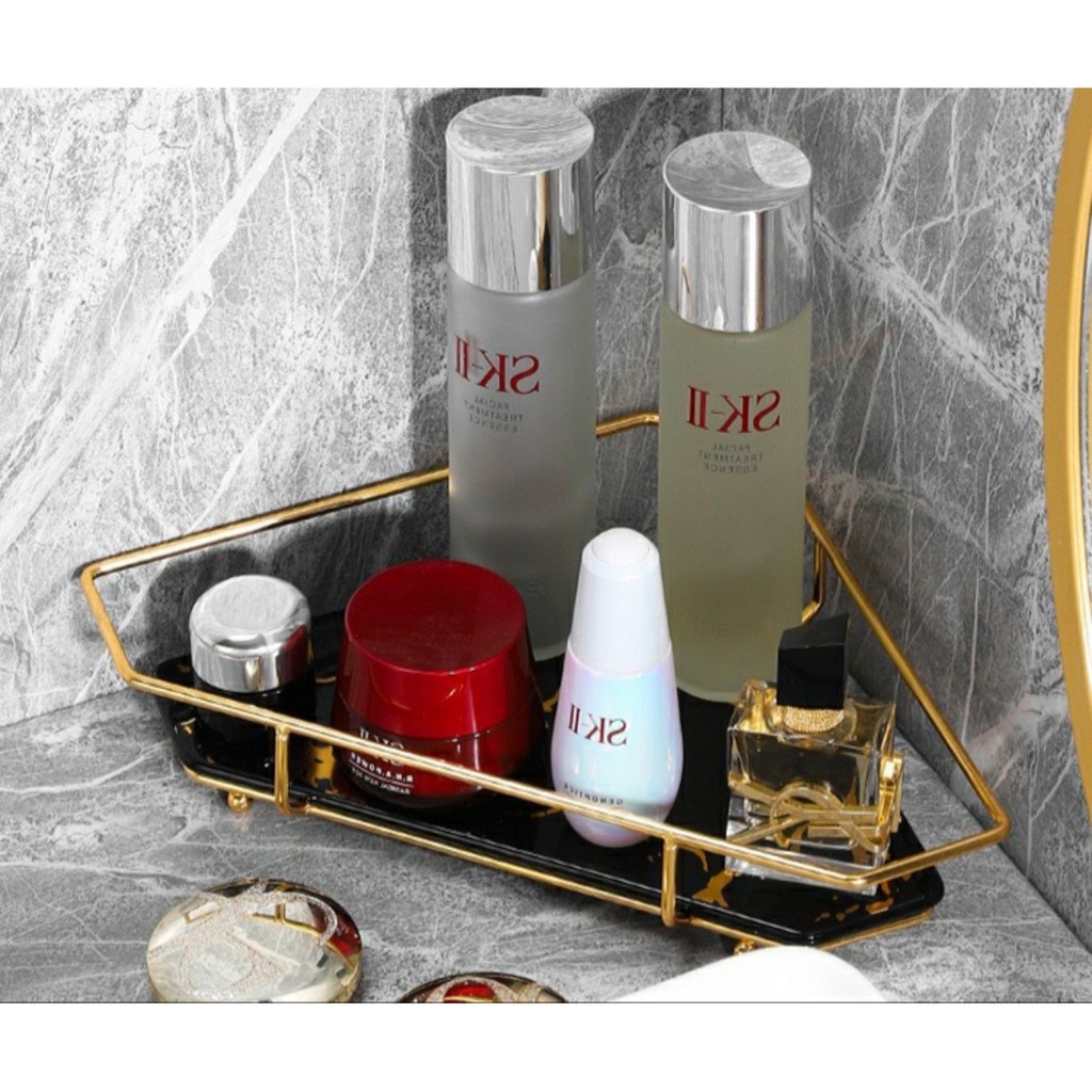Giới thiệu Kệ Góc Để Đồ Nhà Tắm Tam Giác Chất Liệu Sứ Cao Cấp, Khay Đựng Mỹ Phẩm Vân Đá Khung Mạ Vàng Sang Trọng