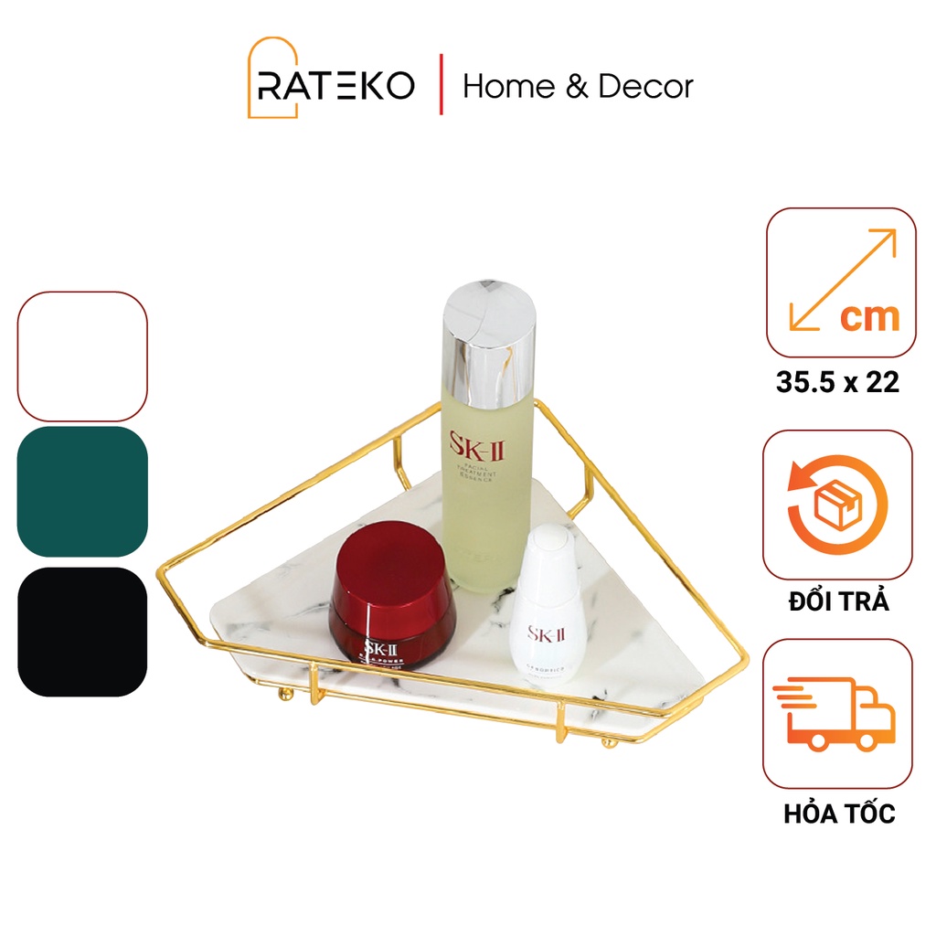 Giới thiệu Kệ góc để đồ phòng tắm tam giác, đựng mỹ phẩm vân đá cẩm thạch RATEKO CS12