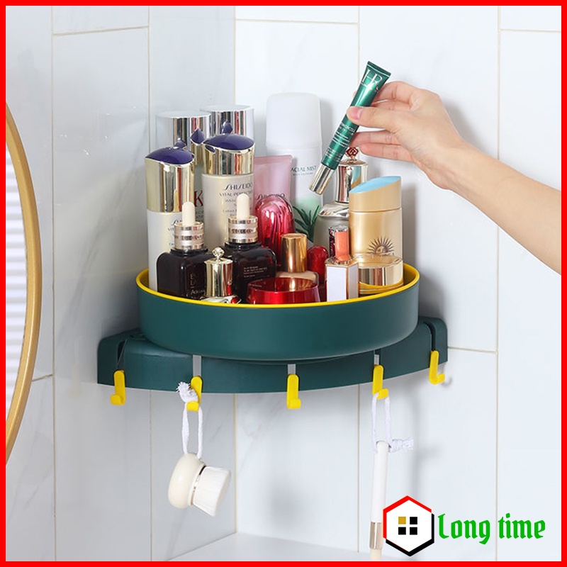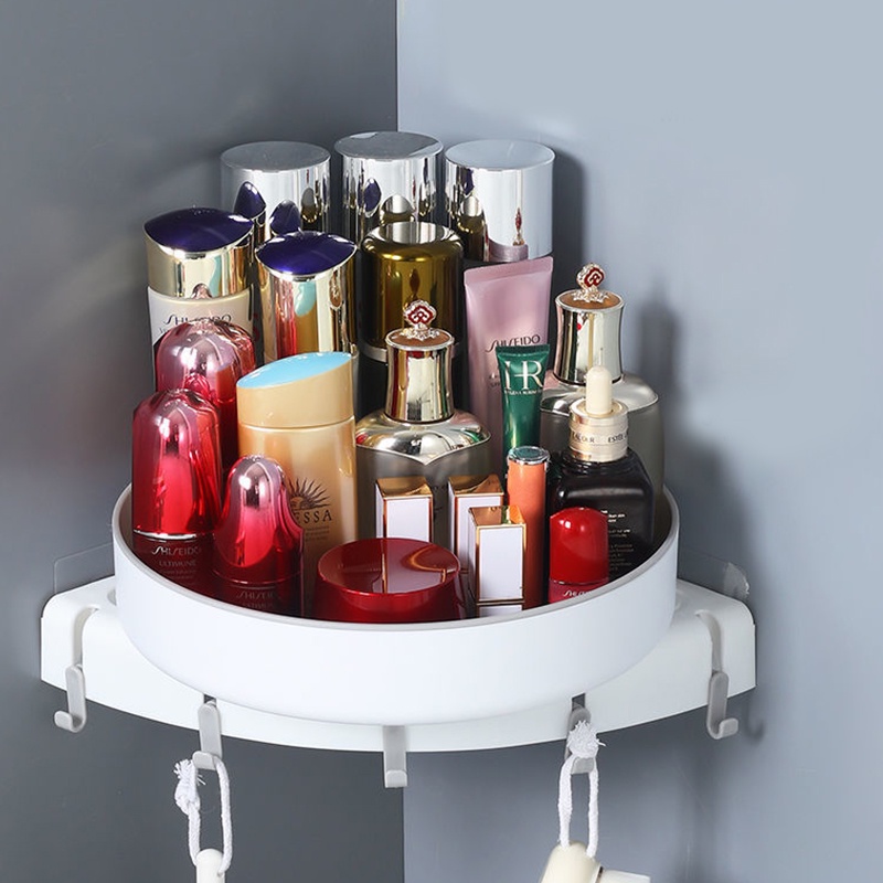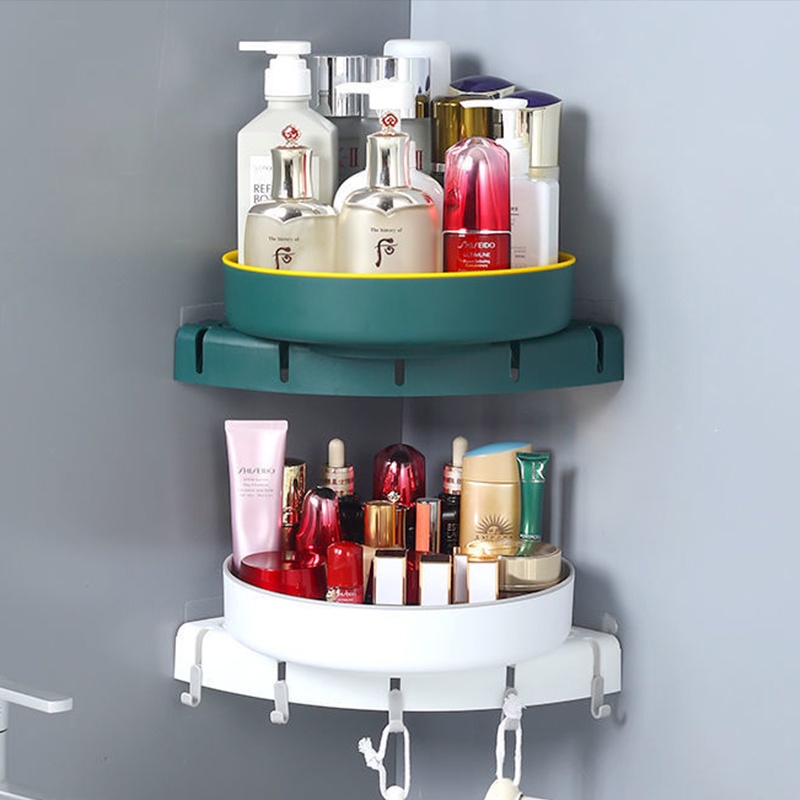 Nhà cửa & Đời sống > Đồ dùng phòng tắm > Kệ để đồ phòng tắm || Kệ góc để mỹ phẩm nhà tắm, gia vị nhà bếp dán tường xoay 360 nhựa PP cao cấpCòn hàng