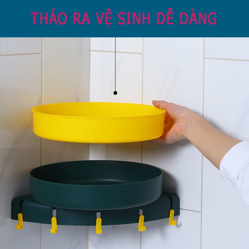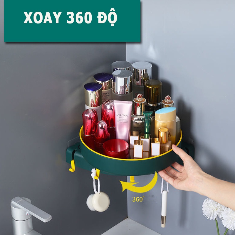 Kệ góc để mỹ phẩm nhà tắm, gia vị nhà bếp dán tường xoay 360 nhựa PP cao cấp