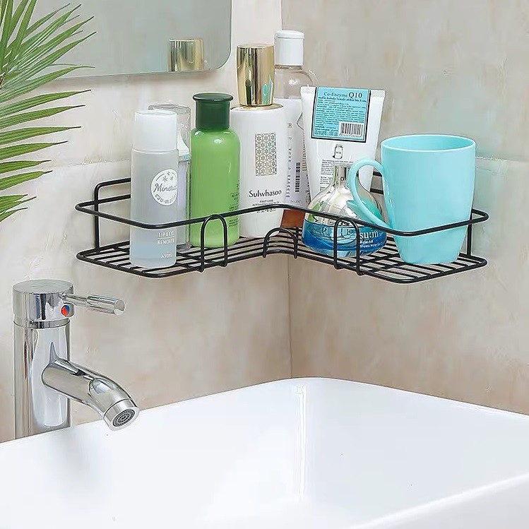 Kệ góc dính tường phòng tắm nhà bếp cao cấp - Thiết kế hiện đại hình chữ V gắn siêu chắc không khoan tường