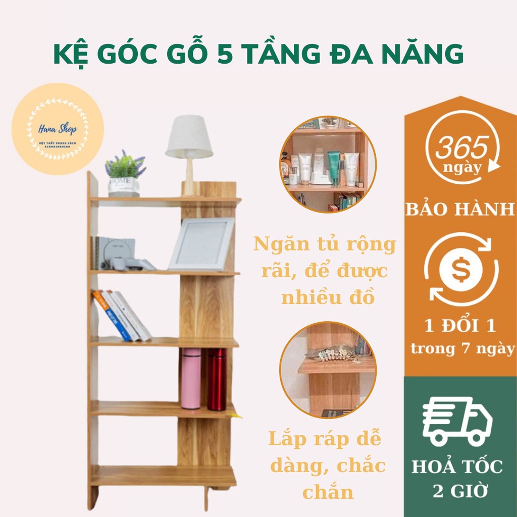 Kệ góc gỗ 5 tầng - kệ góc cao cấp, gỗ MDF chống ẩm, chống mối mọt, khả năng chịu lực tốt, sản phẩm bền đẹp Hana Shop