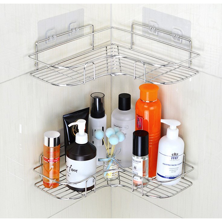 Nhà Cửa & Đời Sống > Đồ dùng phòng tắm > Kệ để đồ phòng tắm || Kệ Góc INOX 304 Để Đồ Nhà Tắm Nhà Bếp Treo Dán Góc Tường Không Cần Khoan VítCòn hàng