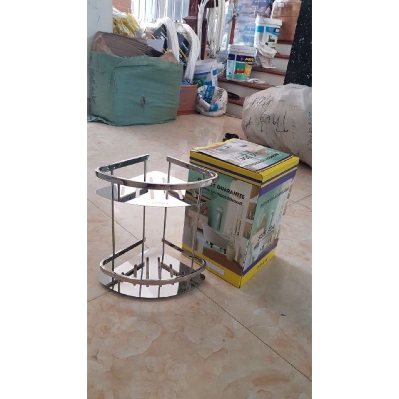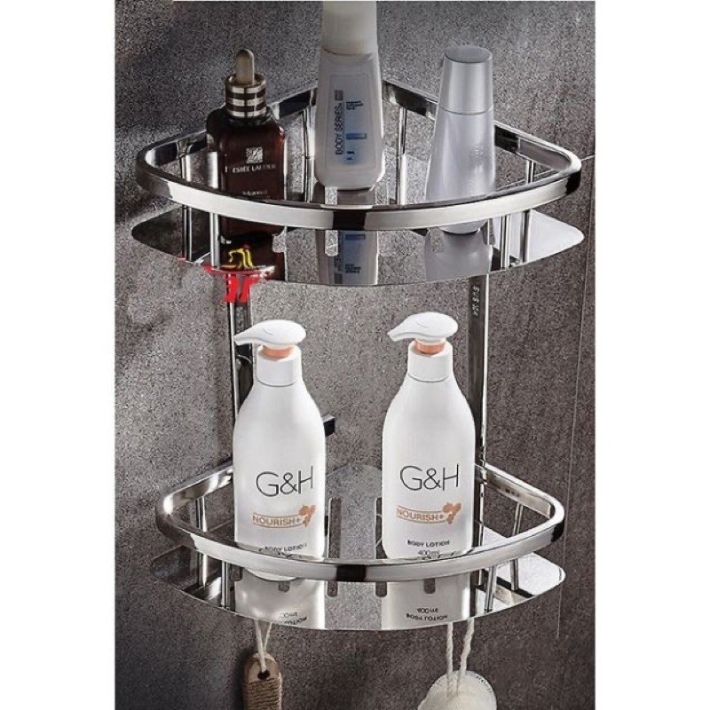 Kệ góc inox, kệ nhà tắm 2 tầng inox 304