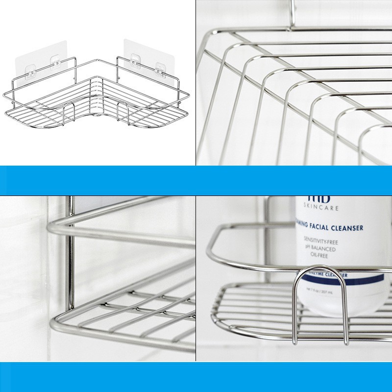 Nhà cửa & Đời sống > Đồ dùng phòng tắm > Kệ để đồ phòng tắm || Kệ góc Inox không gỉ nhà tắm, nhà bếp, phòng khách tam giác dán tường siêu dính FREESHIP chịu lực 10kg.Còn hàng