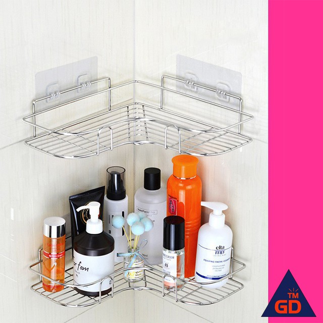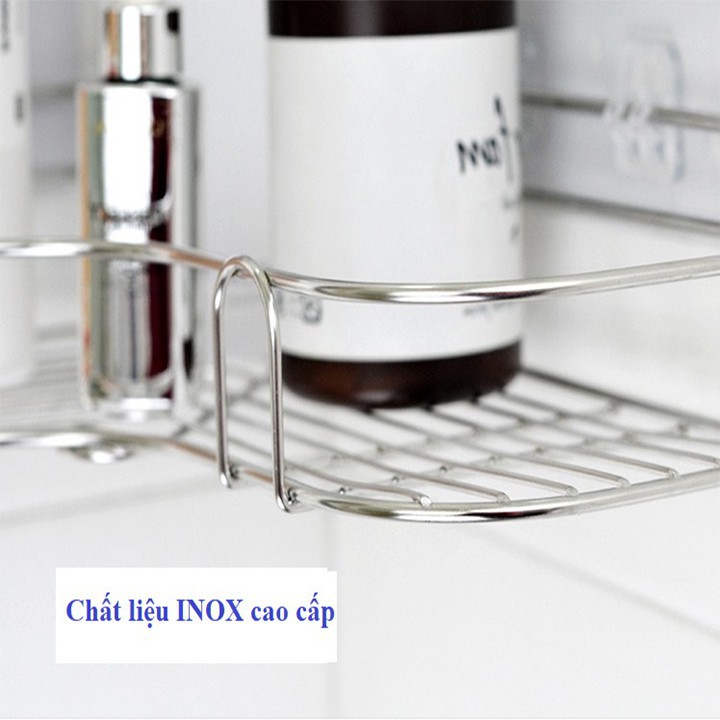 🍀Kệ góc INOX 304 treo dán góc tường nhà tắm nhà bếp gồm 1 kệ góc và 2 miếng dán để treo kệ