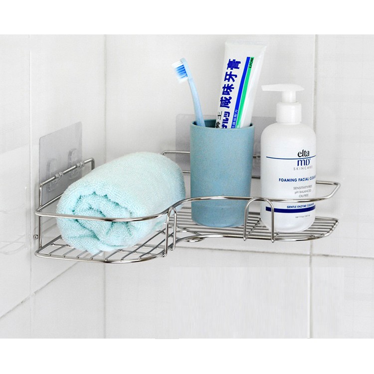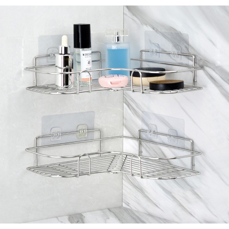 Nhà Cửa & Đời Sống > Tủ đựng & Hộp lưu trữ > Kệ đựng đồ đa năng || Kệ góc Inox không gỉ nhà tắm, nhà bếp, phòng khách tam giác dán tường siêu dính FREESHIP chịu lực 10kg.Còn hàng