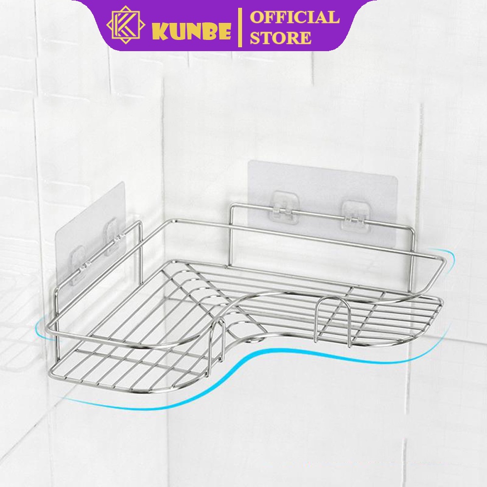 Kệ Góc Inox KUNBE, Gắn Tường Nhà Tắm Bằng Miếng Dính Đôi Cường Lực Chắc Chắn, Không Cần Khoan Đục