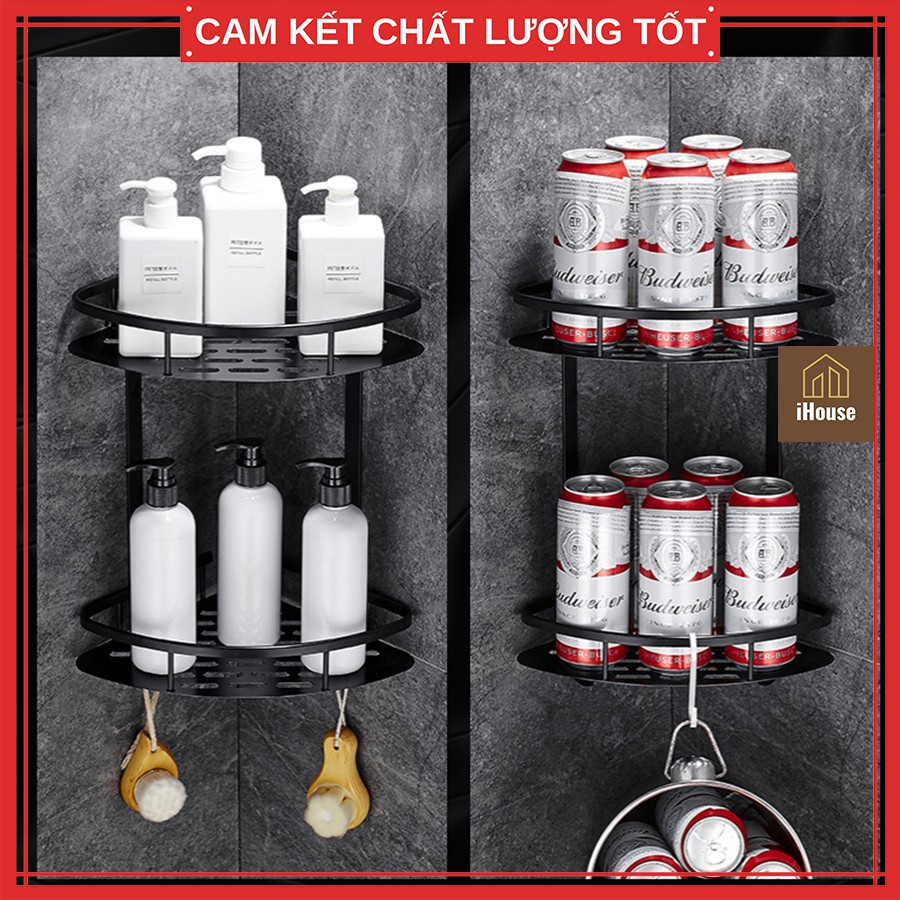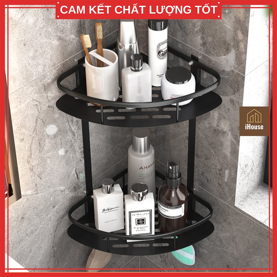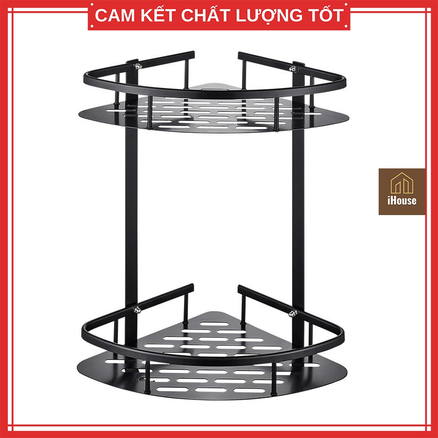 Kệ góc inox nhà tắm 1-2-3 tầng hợp kim màu đen, Kệ phòng tắm inox dán tường & khoan vít nhà tắm đa năng iHouse
