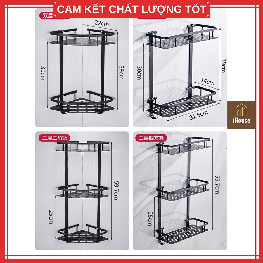 ☘️[LOẠI 1] Kệ góc inox nhà tắm 1 - 2 - 3 tầng hợp kim nhôm màu đen, Kệ phòng tắm inox, Kệ góc dán tường & khoan vít nhà tắm đa năng thông minh iHouse (có nhiều hình dạng khác nhau: Kệ góc tam giác 1 tầng, Kệ góc tam giác 2 tầng, Kệ góc tam giác 3 tầng, Kệ hình chữ nhật 1 tầng, Kệ hình chữ nhật 2 tầng).Ngoài nhà tắm có thể làm giá góc để đồ trong bếp, trong phòng không gỉ, luôn sáng bóng và sang trọng.