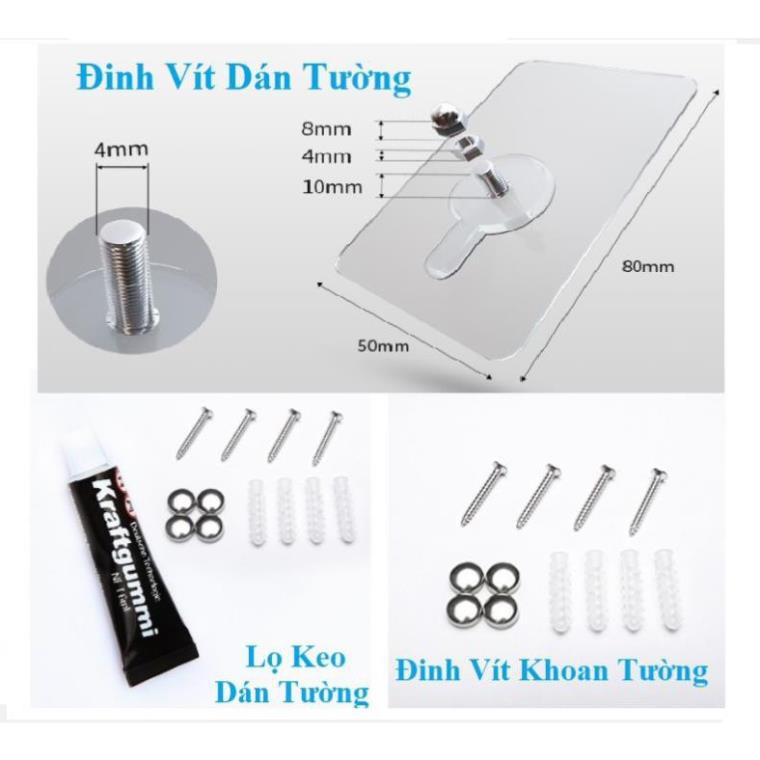 - Bộ sàn phẩm gồm 01 Kệ INOX + 4 miếng dán tường pvc + 1 chai keo+ 2 móc inox + 1 bộ vít khoan tường