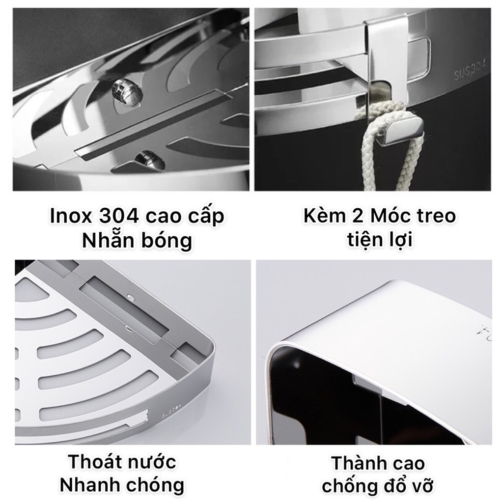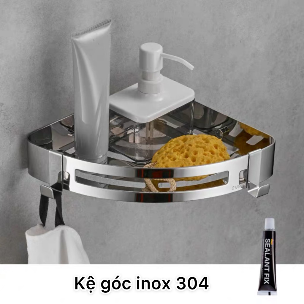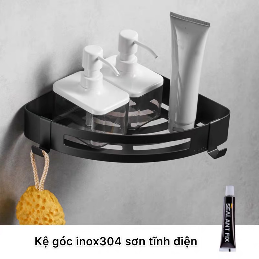 Kê góc / chữ nhật dán tường inox 304 sơn tĩnh điện để dầu gội đầu, sữa tắm