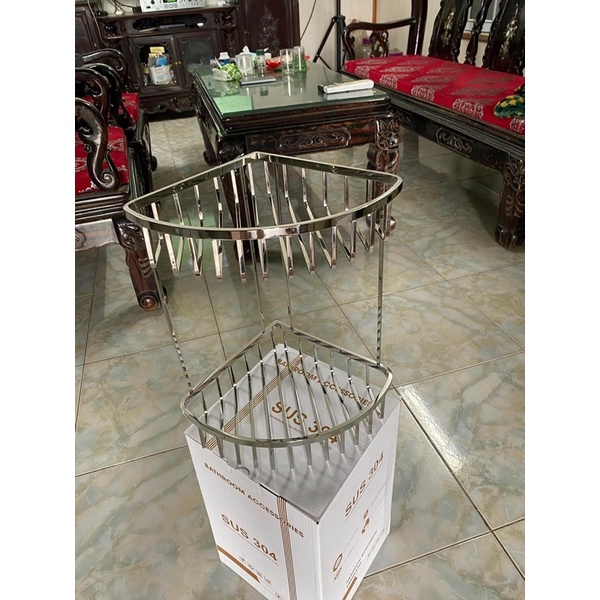 Mô tả sản phẩm Kệ góc 2 tầng inox 304.