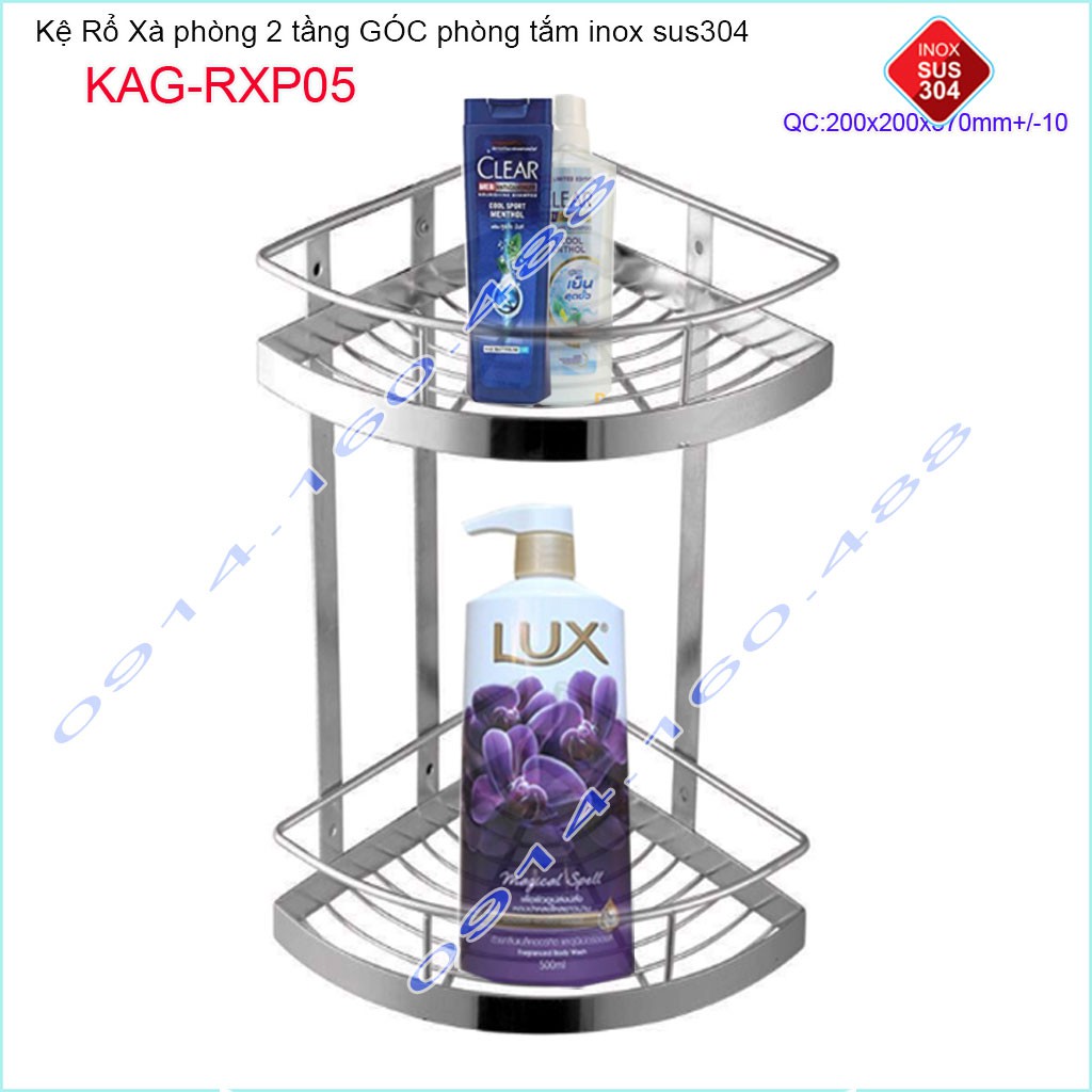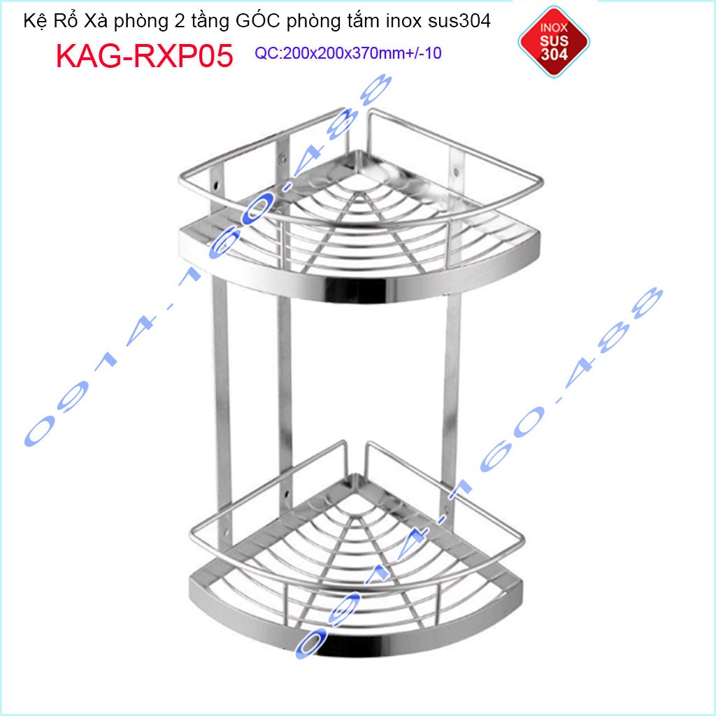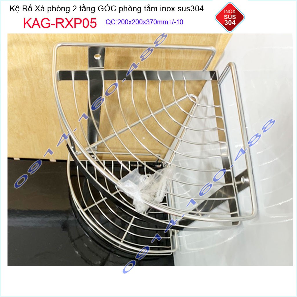 Kệ góc nhà tắm 2 tầng 20x20cm KAG-RXP05, kệ góc phòng tắm inox SUS304 giá tốt hàng sử dụng tốt