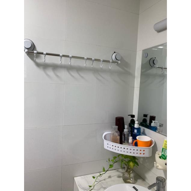✔Kệ để đồ nhà tắm với thiết kế gạt hút chân không kiểu mới giúp cho bạn dễ dàng cố định ở các bề mặt như góc tường, góc tủ,…