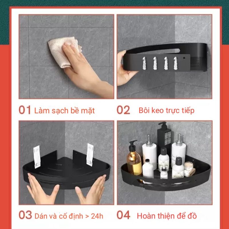 Giới thiệu Kệ Góc Nhà Tắm Dán Tường Cao Cấp Tiết Kiệm Diện Tích, Không Cần Khoan Đục (SL:1c)