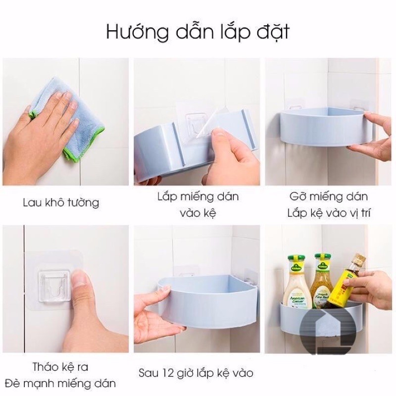 >>>> Lau khô và sạch bề mặt cần dán Kệ Góc Nhà Tắm. Tiếp theo, dán móc dán của sản phẩm lên và lấy tay chà vuốt miếng dán cho dính đều rồi cuối cùng là ráp kệ vào thế là xong!!