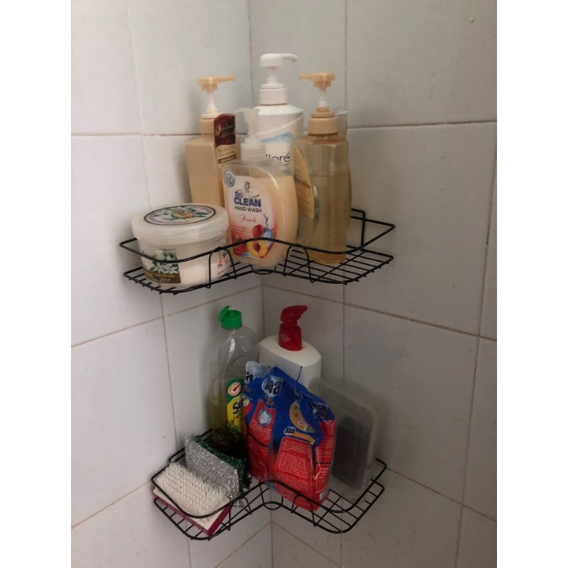 Nhà cửa & Đời sống > Đồ dùng phòng tắm > Kệ để đồ phòng tắm || Kệ góc nhà tắm dán tường giá đựng gia vị nhà bếp siêu dính thép không gỉ sơn tĩnh điện chắc bền đẹpCòn hàng