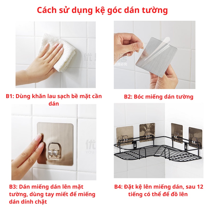 Kệ góc nhà tắm dán tường giá đựng gia vị nhà bếp siêu dính thép không gỉ sơn tĩnh điện chắc bền đẹp