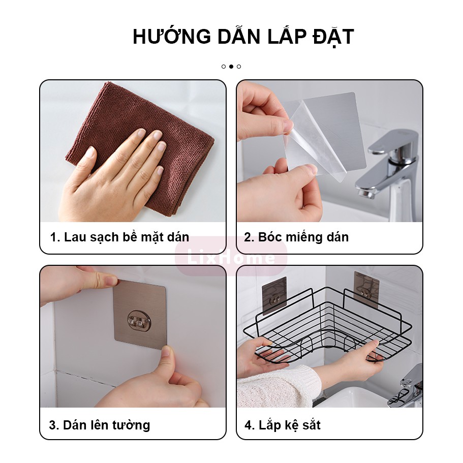 Giới thiệu Kệ góc nhà tắm dán tường Inox, sắt sơn tĩnh điện đựng dầu gội, sữa tắm, gia vị không cần khoan đục LKG1 - LIXHOME