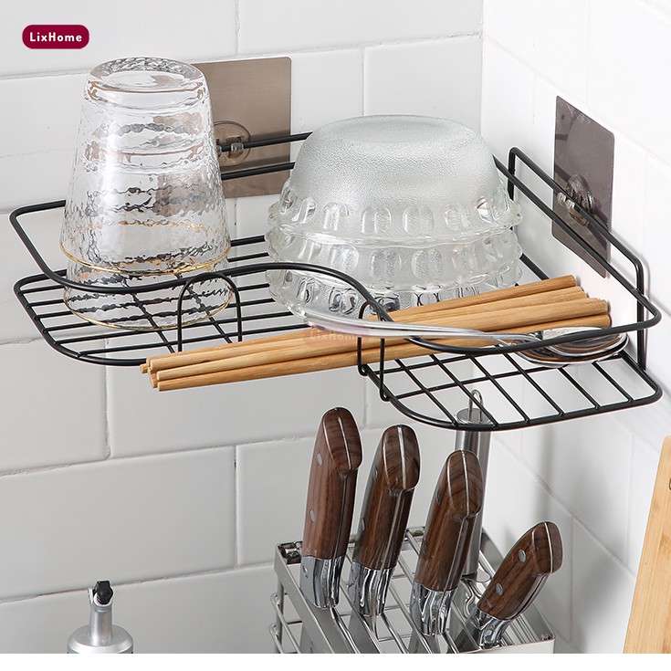 Kệ góc nhà tắm dán tường Inox, sắt sơn tĩnh điện đựng dầu gội, sữa tắm, gia vị không cần khoan đục LKG1 - LIXHOME