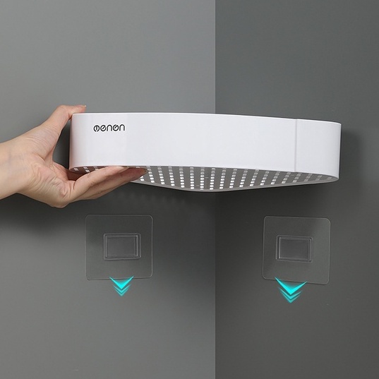 Nhà cửa & Đời sống > Đồ dùng phòng tắm > Kệ để đồ phòng tắm || Kệ góc nhà tắm dán tường nhựa ABS, kệ để gia vị nhà bếp có lỗ thoát nướcCòn hàng