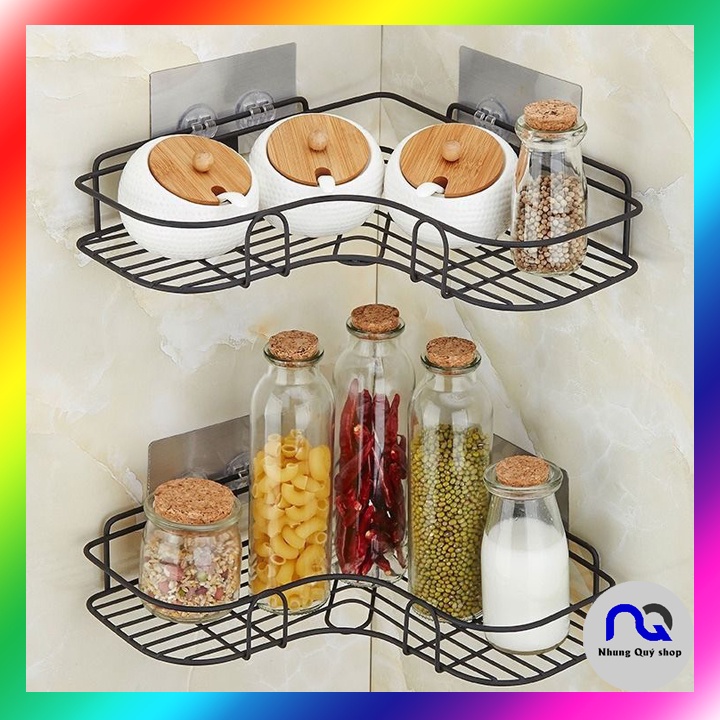 Kệ góc nhà tắm dán tường siêu chắc chắn - Giá góc sắt để đồ nhà tắm, bếp không khoan đục tiện ích