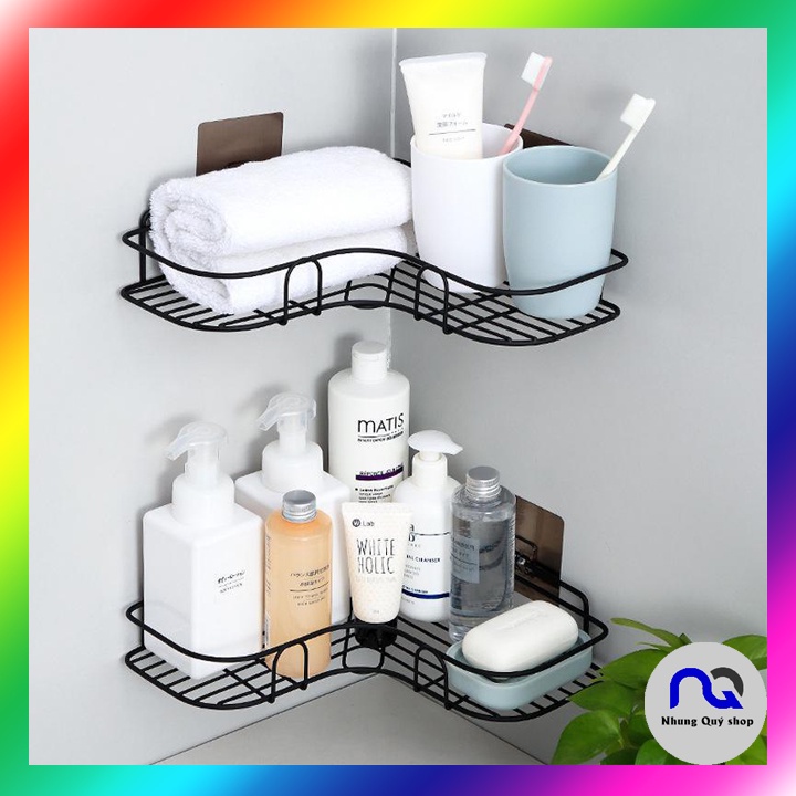 Nhà cửa & Đời sống > Đồ dùng phòng tắm > Kệ để đồ phòng tắm || Kệ góc nhà tắm dán tường siêu chắc chắn - Giá góc sắt để đồ nhà tắm, bếp không khoan đục tiện íchCòn hàng