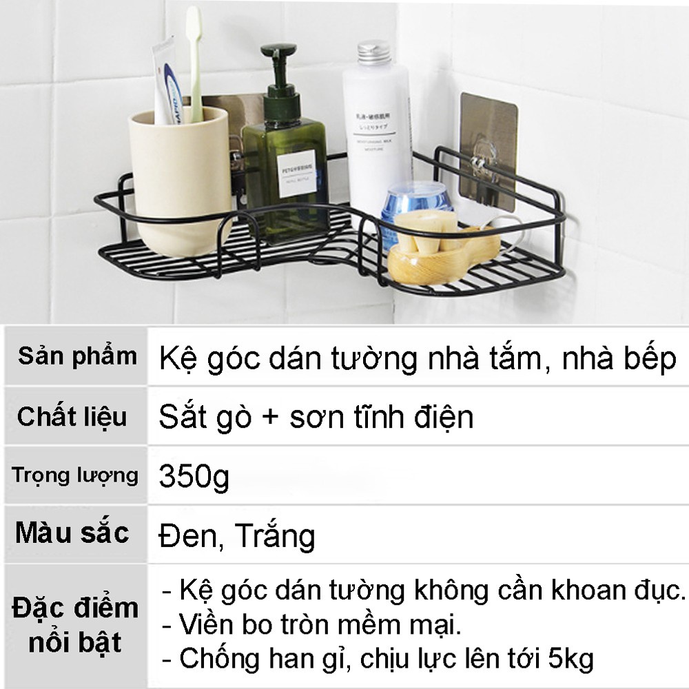 Kệ góc nhà tắm dán tường siêu dính chịu lực - kệ góc dán tường nhà tắm nhà bếp đa năng sơn tĩnh điện không gỉ sét
