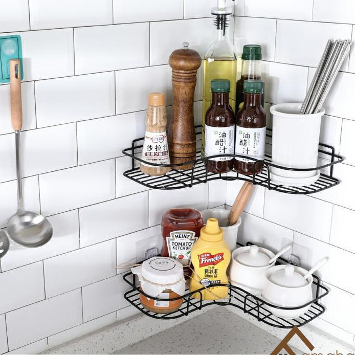 - Kệ góc, Giá đỡ treo dán góc tường dễ dàng tháo lắp nơi phòng tắm, nhà bếp, phòng ngủ đựng mỹ phẩm, gia vị.