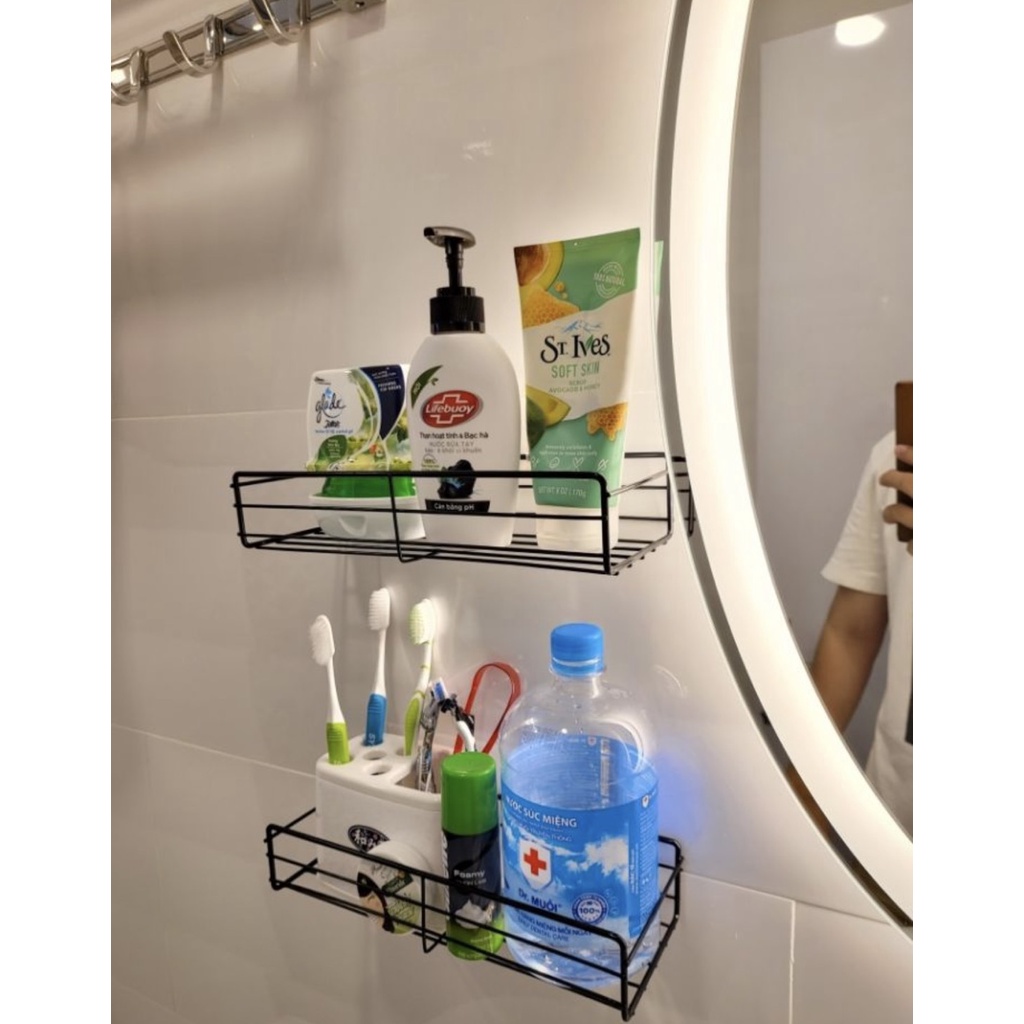 - Kích thước kệ chữ nhật sắt : 26.5*10.5*5cm (kèm 1 dán đôi hoặc 2 đán đơn)
