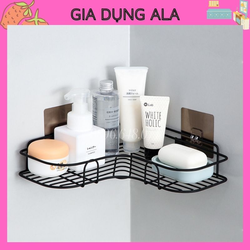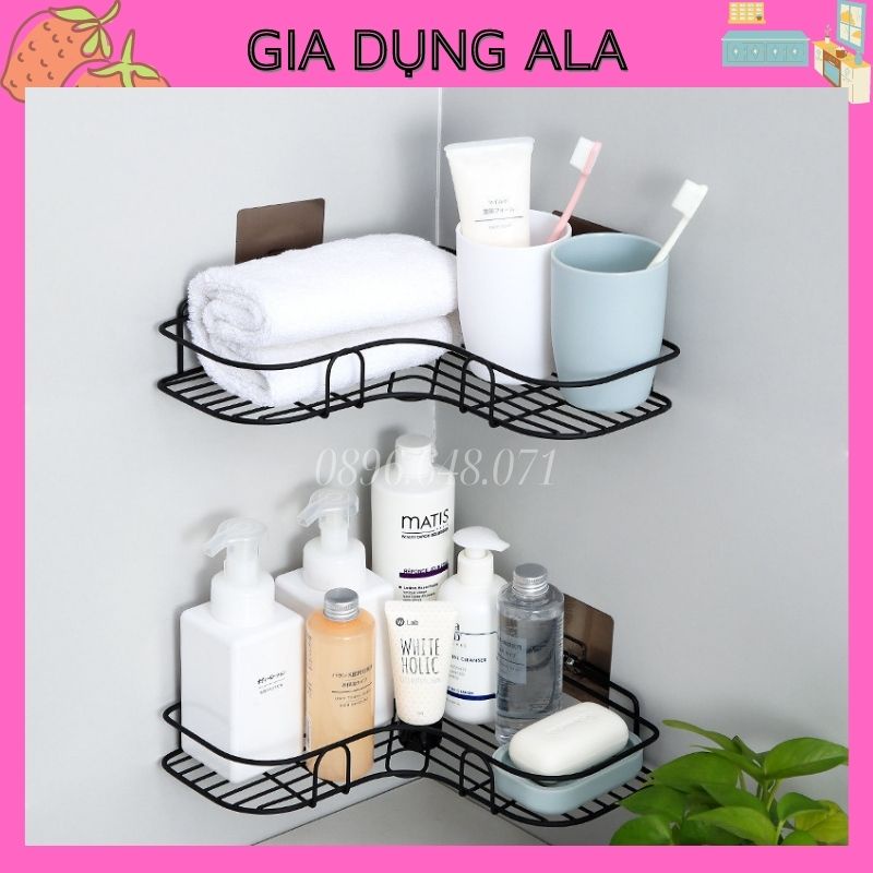 - Kệ nhà tắm treo dán góc tường dễ dàng tháo lắp nơi phòng tắm, nhà bếp, phòng ngủ đựng mỹ phẩm, gia vị.