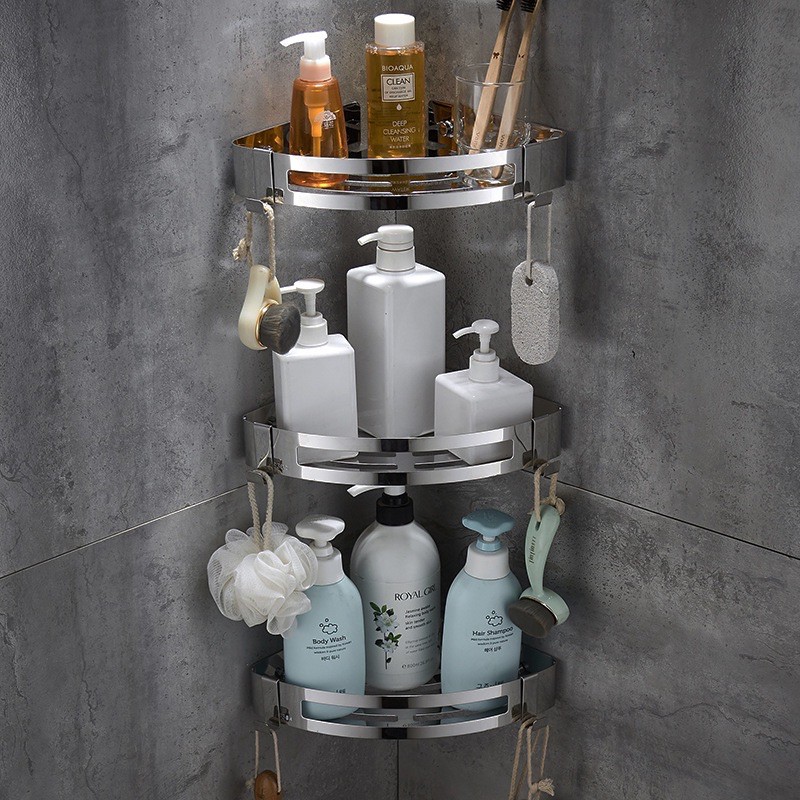 Nhà cửa & Đời sống > Đồ dùng phòng tắm > Kệ để đồ phòng tắm || Kệ góc nhà tắm, kệ gia vị nhà bếp 3 tầng, inox sus 304 sáng bóng gắn keo không cần khoan vítCòn hàng