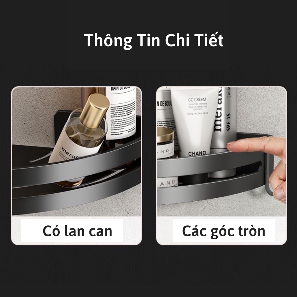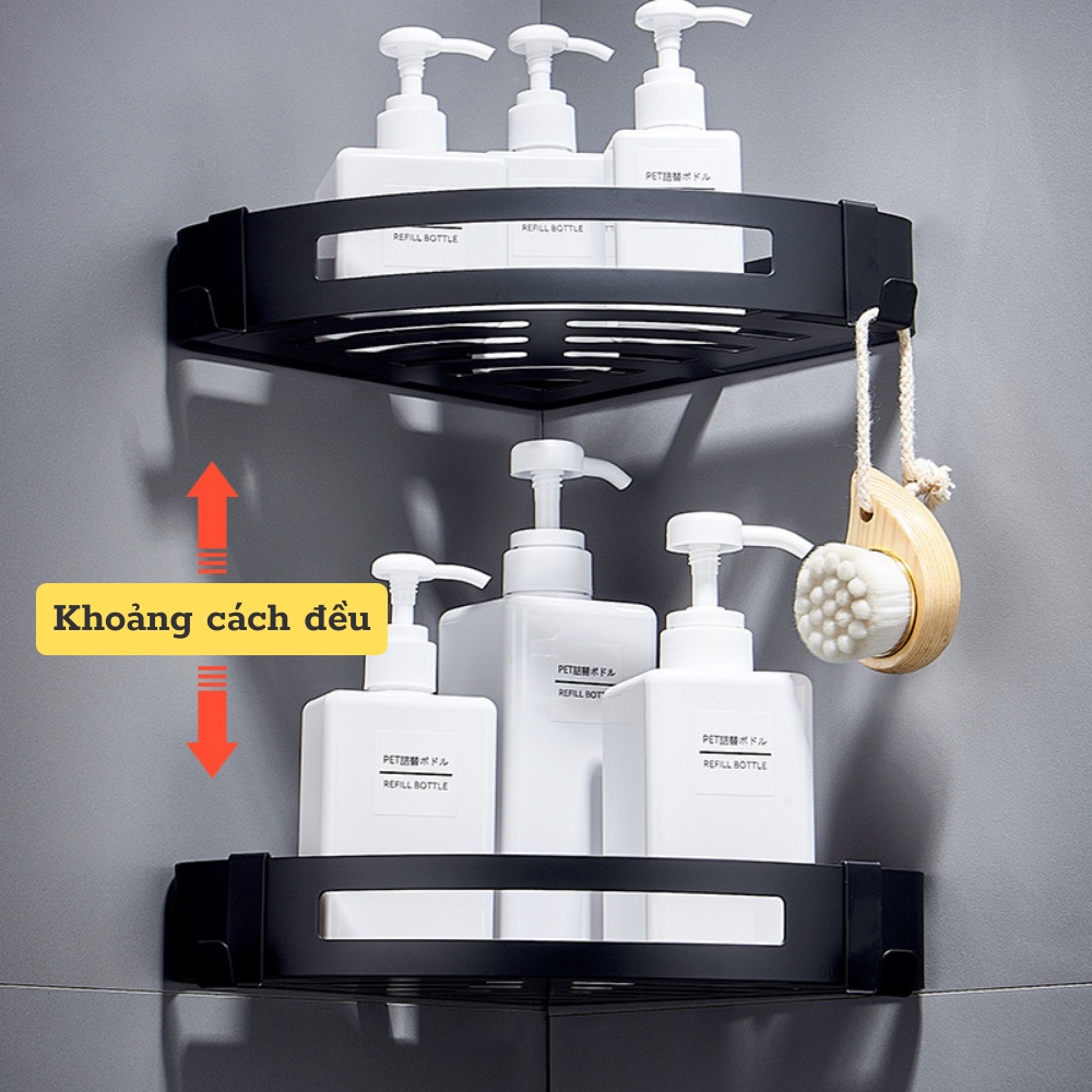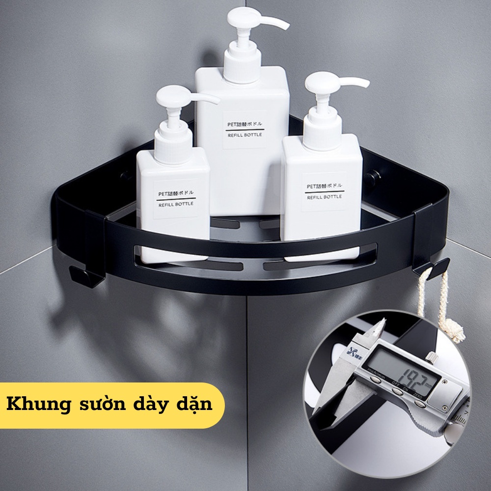 - Kệ góc, Giá đỡ treo dán góc tường dễ dàng tháo lắp nơi phòng tắm, nhà bếp, phòng ngủ đựng mỹ phẩm, gia vị.