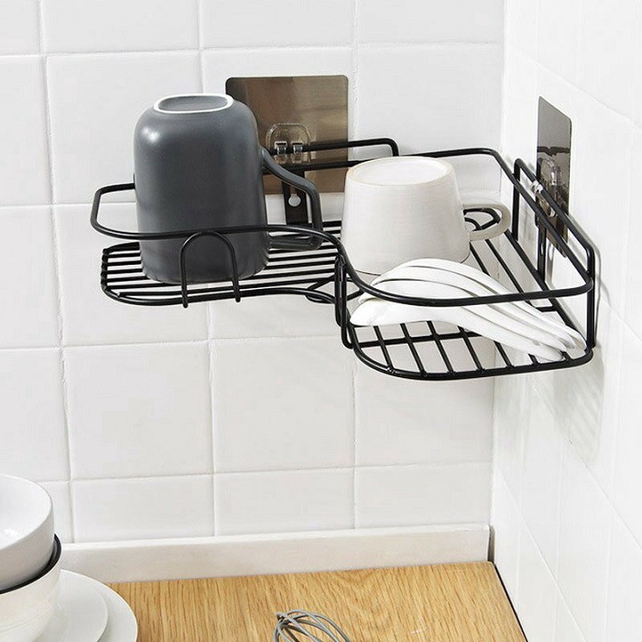 Kệ góc nhà tắm kim loại phun sơn tĩnh điện dán tường siêu dính trong nhà tắm, nhà bếp tiện dụng (KGS05)