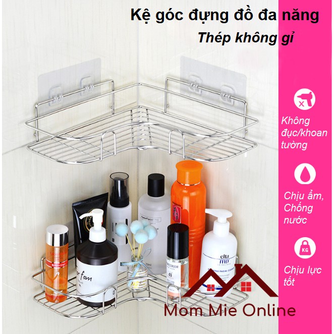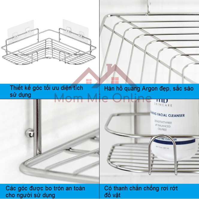 KỆ GÓC NHÀ TẮM, NHÀ BẾP BẰNG INOX, DÁN TƯỜNG CAO CẤP - Q001Thông tin về sản phẩm dưới đây thuộc sở hữu của shop Mom Mie Online, mô tả đúng theo chất lượng sản phẩm của shop. Vui lòng không sao chép.