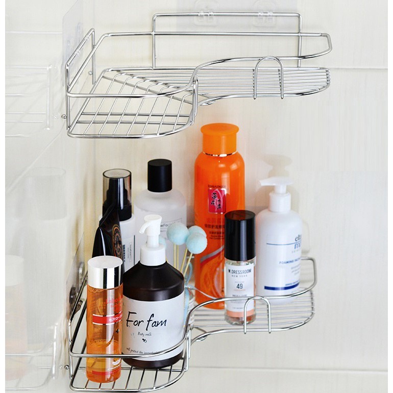 - Diện tích nhà tắm nhà bạn hẹp, chắc hẵn bạn sẽ nghĩ sẽ tận dụng những phần không gian có thể để đựng đồ đạc? Chiếc kệ góc đa năng này sẽ là nơi đựng các vật dụng như dầu gội, sữa tắm và các đồ dùng vệ sinh cá nhân vừa thuận tiện vừa sạch sẽ.
