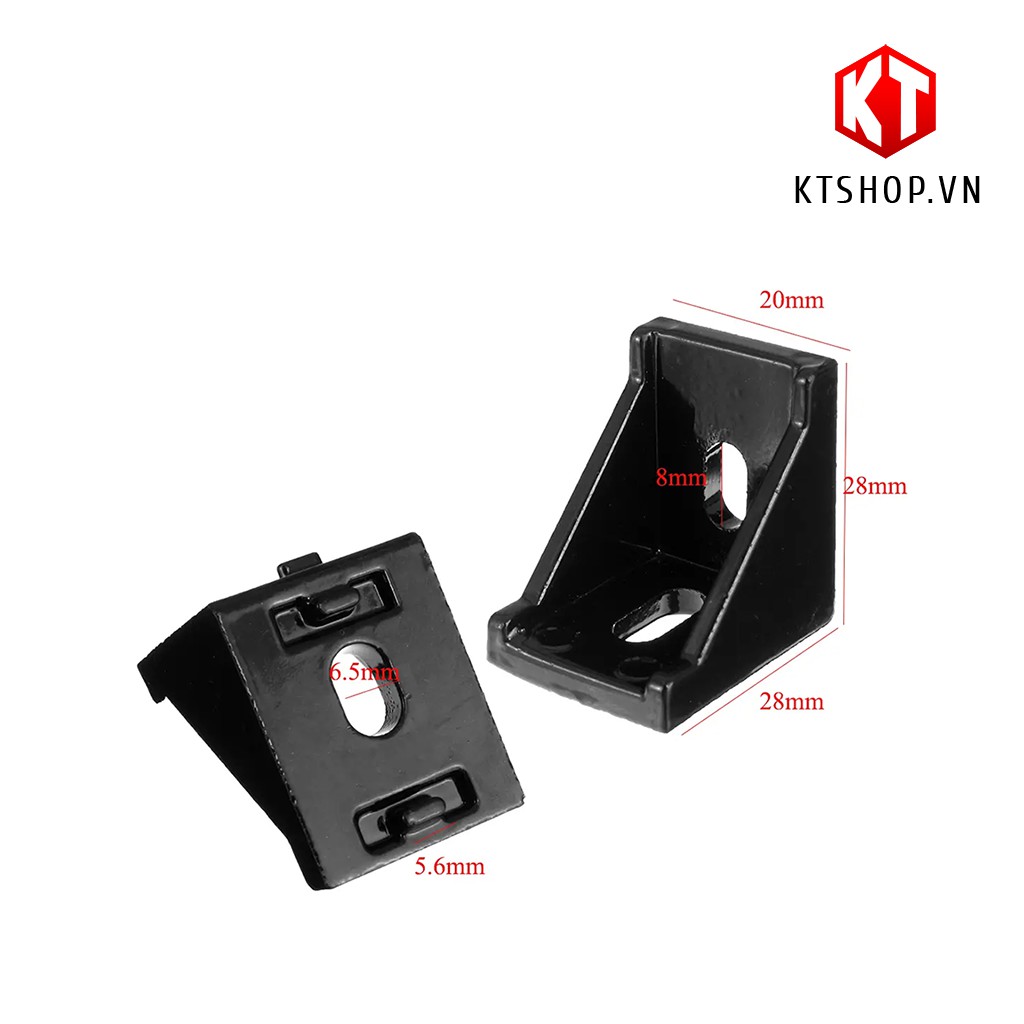 Ke góc nhôm 20x28 cho nhôm 2020Vật liệu: Nhôm đúc áp lực - Xử lý phun cát và phun phủ bề mặt, sau đó được sơn lại chống trầy và có độ thẩm mỹ cao