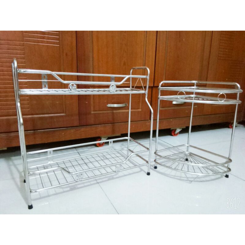 Kệ góc 2 tầng inox dùng trong phòng tắm để xà bông, sữa tắm, bàn chải,.....Tiện lợi cho không gian phòng tắm gọn gàng sạch sẽ.