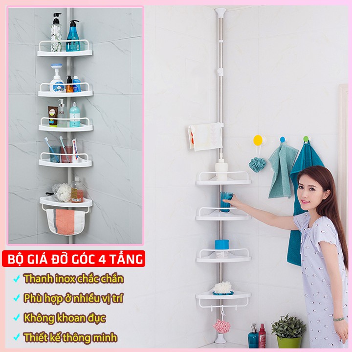 Kệ góc rút 4 tầng để đồ nhà tắm-Bộ giá đỡ góc 4 tầng - Điều chỉnh độ cao theo từng phòng