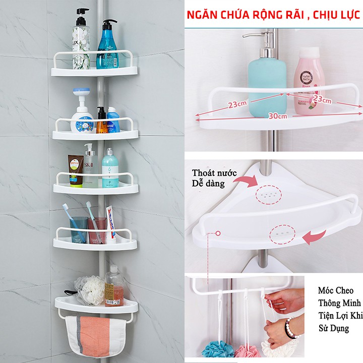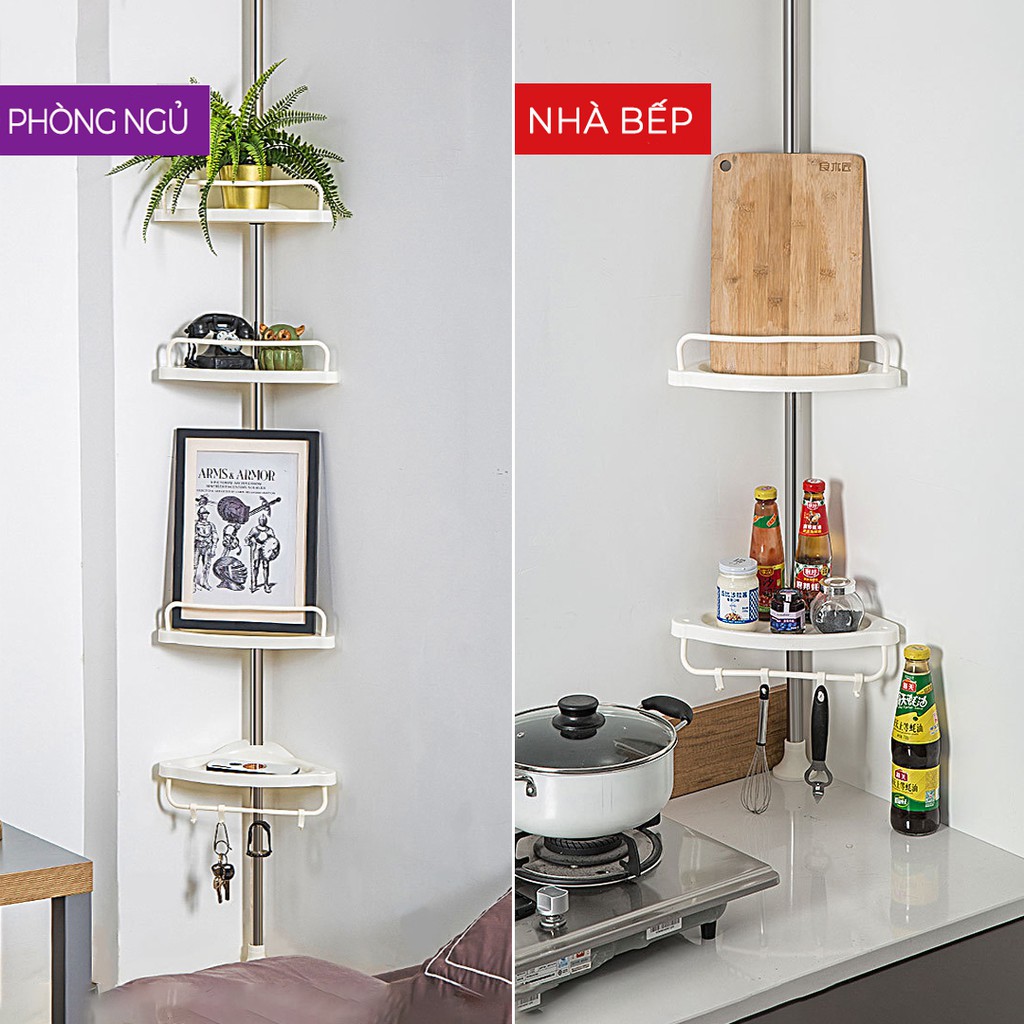 Kệ góc 4 tầng thích hợp sử dụng ở nhiều không gian: nhà bếp, nhà tắm...