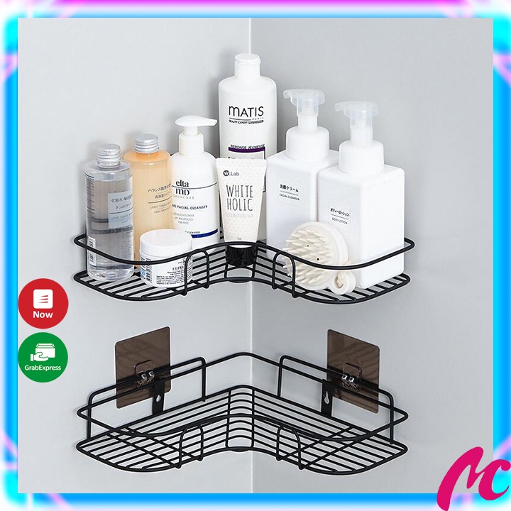 Kệ góc sắt dán tường nhà tắm,nhà bếp siêu tiện dụng tặng kèm miếng dán,kệ góc đa năng dán tường ko khoan đục_MC995-Diện tích nhà tắm nhà bạn hẹp, chắc hẵn bạn sẽ nghĩ sẽ tận dụng những phần không gian có thể để đựng đồ đạc? Chiếc Kệ Góc Sắt Dán Tường này sẽ là nơi đựng các vật dụng như dầu gội, sữa tắm và các đồ dùng vệ sinh cá nhân vừa thuận tiện vừa tiết kiệm không gian