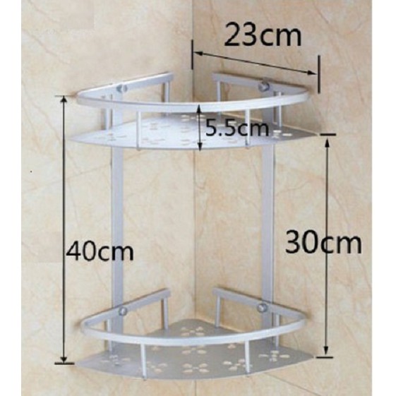Kệ Góc 2 Tầng Tam Giác Tiện Lợi Thiết kế thông minh có thể cố định được nơi góc tường hẹp giúp tiết kiệm không gian tối đa.Tạo sự gọn gàng, ngăn nắp cho nhà tắm, nhà vệ sinh.Kệ có 2 tầng, dùng để đồ cho ráo nước, tránh bụi bẩn, vi khuẩn, ẩm mốc.Chất liệu hợp kim nhôm bền đẹp.được thiết kế kiểu dáng sang trọng, tiện dụng cho việc tiết kiệm không gian mà vẫn đẹp mắt.bạn hoàn toàn có thể đặt ở nhiều vị trí trong nhà khác nhau như: phòng bếp, phòng khách, phòng tắm, ban công...có hình tam giác, 2 mặt áp sát vào tường nên cực kỳ chắc chắn và gọn gàng. Bạn có thể đặt các sản phẩm như chai lọ, mỹ phẩm, dầu gội... trên giá góc một cách gọn gàng, ngăn nắp và sang trọng. còn có các móc treo tiện lợi ngay phía dưới, giúp bạn tận dụng được thêm diện tích để treo đồ hay các vật dụng cần thiết. được làm từ inox cao cấp không hoen gỉ, luôn giữ được độ sáng bóng như mới cả trong những môi trường có độ ẩm cao.dễ dàng lắp đặt, đặc biệt bạn có thể lắp 1 tầng hoặc 2 tầng tùy theo nhu cầu sử dụng.Kệ Góc 2 Tầng Tam GiácTiện Lợi Dùng để đựng hũ gia vị, lọ thuốc, dầu gội, dầu xả....Kiểu dáng đơn giản mà hiện đại cùng thiết kế chắc chắn, các khớp nối được gia công kỹ lưỡng nên có thể đựng được trọng lượng nặng.